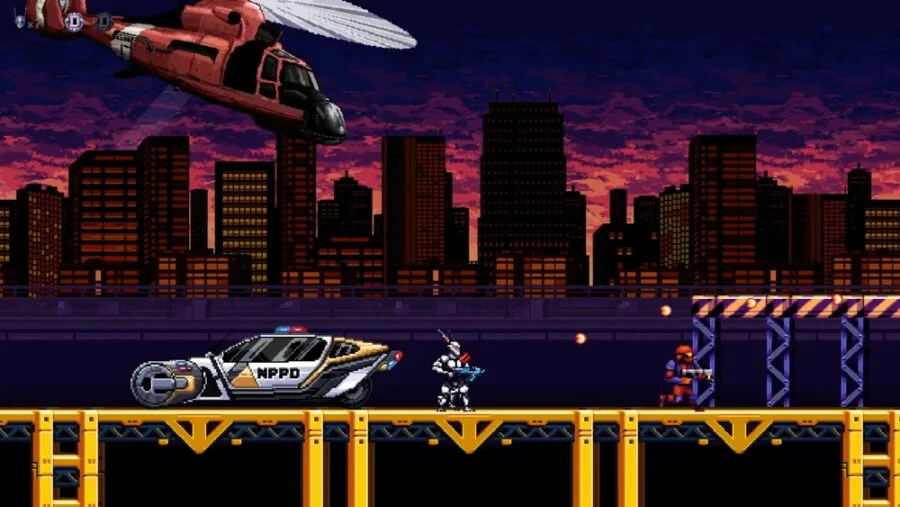 学习敌人的攻击模式并迅速做出反应,始终领先于入侵者。射击、闪避、跳跃,并反击他们的每一次进攻。用为每种情况量身定制的武器提升您的体验。找到您最喜欢的游戏风格或尝试所有武器。在多样的阶段中与敌人激战,保护新港市手绘像素地貌的每一个角落。通过量身打造的金属配乐点燃您的战斗!狂暴的吉他声和强劲的鼓点将您向前推进,势不可挡地穿过敌军。 这才是该类型游戏应有的听觉盛宴!